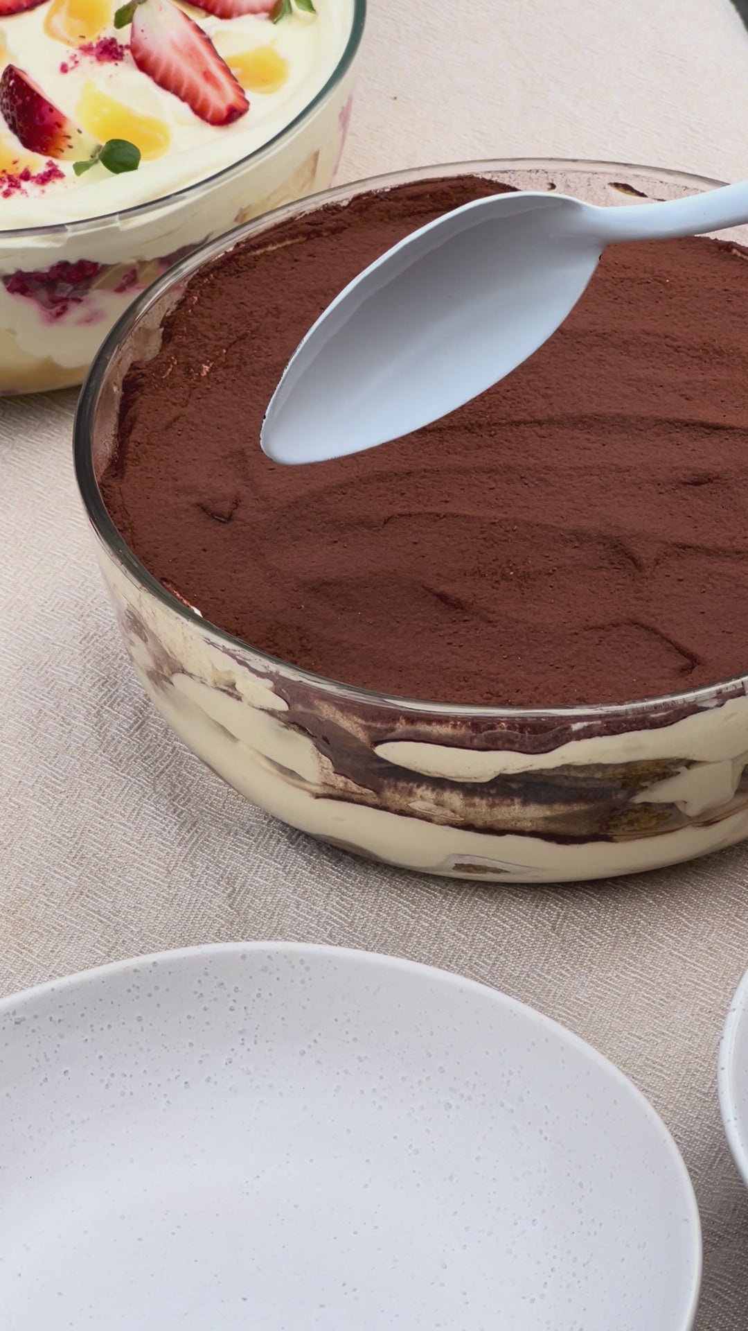 Layers of espresso and Cointreau-soaked sponge, mascarpone cream whipped with a hint of Amaretto, and finished with a dusting of cocoa.