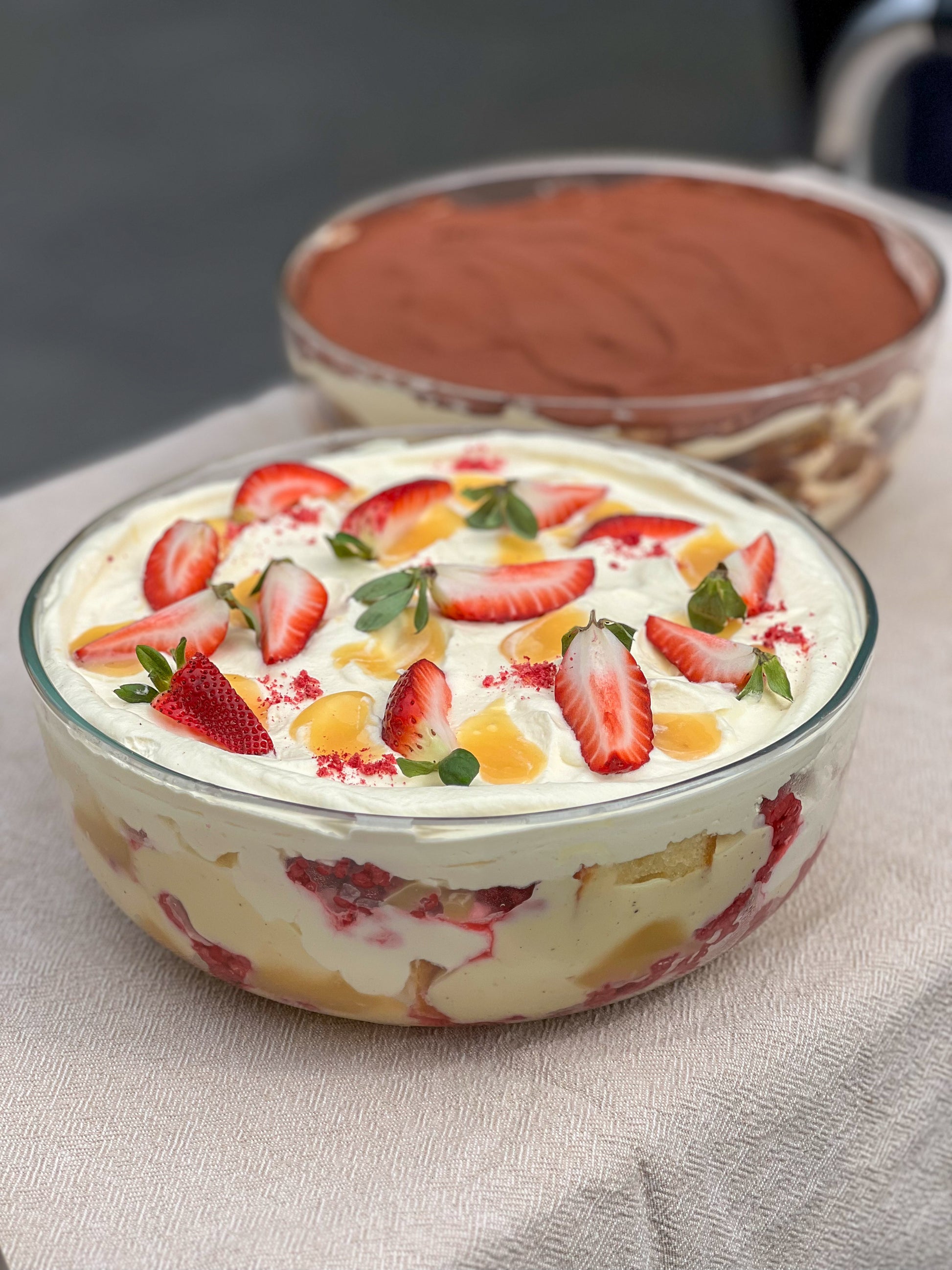 A fresh take on the Christmas classic- layers of lemon sponge, vanilla custard, berries and whipped cream.